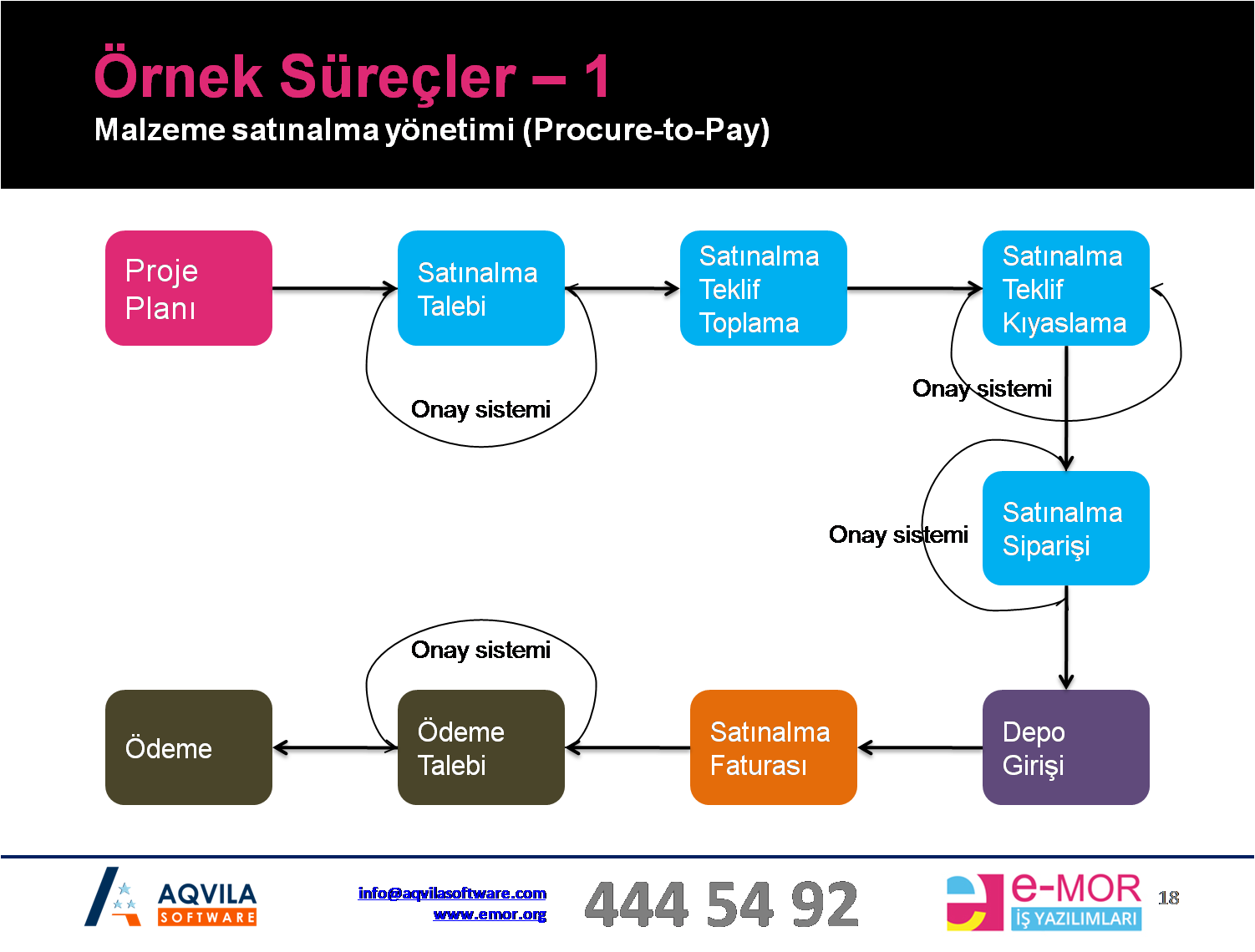 Örneğin, satınalma sürecinizi gözünüzde canlandırın. Sahadan gelen talebi, yöneticilerin onayında dolaşmasını, onaylandıktan sonra tekliflerin toplanmasını, siparişin verilmesini, depoya malzemenin girişini, muhasebeye faturasının gelmesini, finansa ödeme talebi yapılmasını. Gördüğünüz gibi birden fazla biriminiz birlikte çalışıyor.