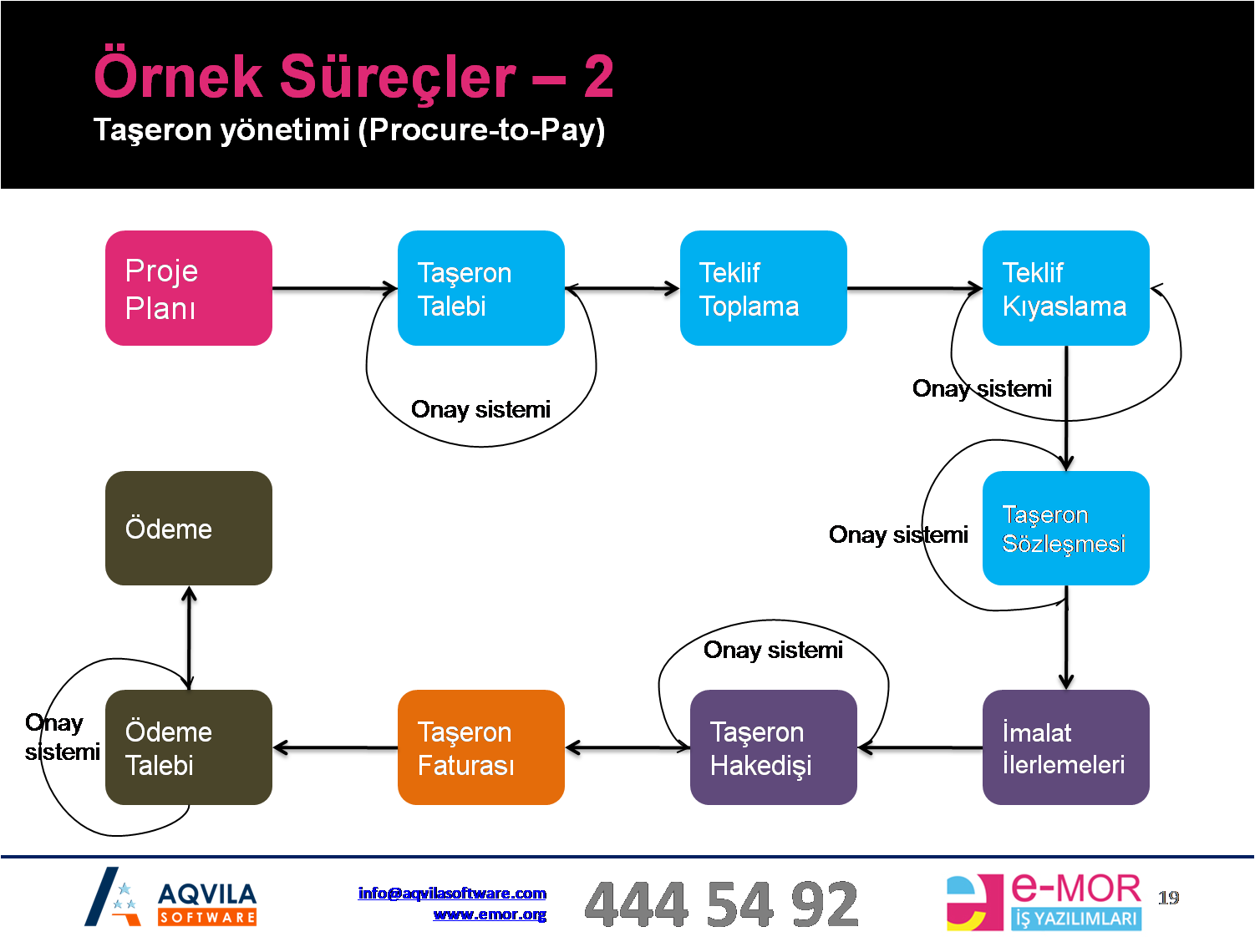 İş hayatında popüler bir deyiş vardır. Karsızlık kanser gibidir, şirketi yavaş yavaş öldürür; nakit problemiyse kalp krizi gibidir, şirket ödemelerini yapamaz ve birden ölür. Çok sayıda tedarikçi ve taşerona yapacağınız ödemeleri kontrol altına almalısınız. Kime ne kadar borcunuz var, ne zaman ne kadar ödemeniz gerekiyor bunları çok iyi takip edebilmelisiniz. Ödeme sürecinizi diğer iş süreçlerinizle entegre ederek ödeme sürecinizde oluşabilecek risklerin önüne geçebilirsiniz.